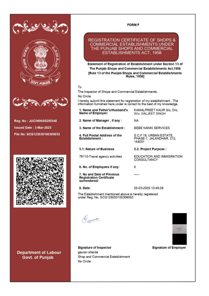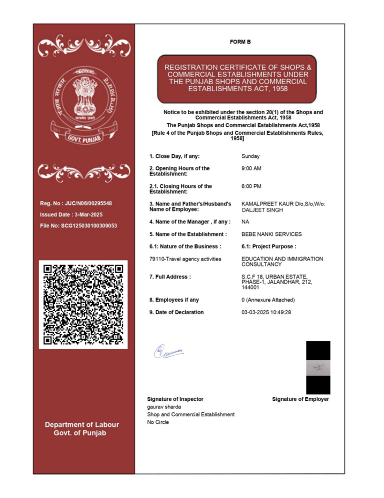 Established in 2020, BN (Bebe Nanki) Services is a leading consultancy dedicated to helping students achieve their dream of studying abroad. BN (Bebe Nanki) Services specialized in Student Visa services for top destinations including Canada, USA, Australia, UK, and Europe. At BN Services, We believe every student deserves the opportunity to shape their future on a global stage . Based in Urban Estate Phase-1, Jalandhar, We are your reliable partners in making your international education dream a reality. Our experienced and professional team is committed to providing personalized counselling, seamless application support and honest and visa guidance. BN (Bebe Nanki) Services offer expert coaching in IELTS, PTE, Spoken English, and Interview Preparation. BN (Bebe Nanki) Services experienced and supportive trainers focus on each student’s individual needs, helping them build strong communication skills and score well in language proficiency exams. Whether you aim to study in UK, Canada, Australia, USA or Europe, We walk with you through each step from selecting the right course and institution to your successful visa approval.